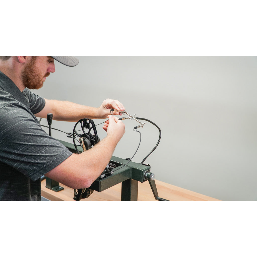 The Last Chance Quick Clip is designed to hold the ends of strings and cables while you tuning your bow to keep them from unwinding. The unit can be mounted to your bow press using the magnet or universal clamp.