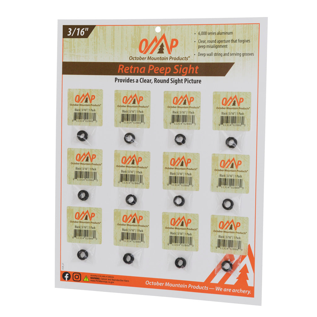 October Mountain Retna Peep Sight Black 3-16 In. 12 Pk.